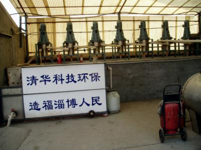 淄博XX陶瓷有限公司有4条陶瓷生产线。有两段式煤气发生炉2台。设计使用CF120离心萃取器8台,处理水量30吨每天。