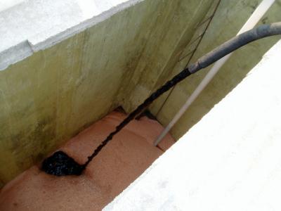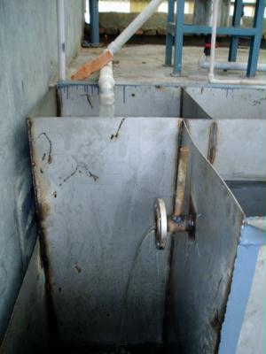 右侧大烧杯为未处理酚水,左侧大烧杯为调酸后酚水,左侧小烧杯为未隔油(回收溶剂)处理后酚水,右侧小烧杯为处理后酚水(不澄清透明是因为水中还有气泡)。
