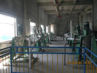 正在安装的CF350离心萃取器现场。采用两条4级CF350萃取生产线,反萃