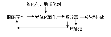 用泵经计量将中间罐废水经计量送入光催化塔,同时计量加入催化剂和助催化剂对废水进行连续催化氧化,在紫外光和催化剂的双重作用下,是水中难降解的多元酚等有机物得到进一步分解,其中变为变为二氧化碳和水,降解后的废水再滤掉水中的反应后的助催化剂等焦油渣固体,清液达标排放。焦油渣主要成分为酚的聚合物,可以融入上工序产生的聚合有机物一同处理。。